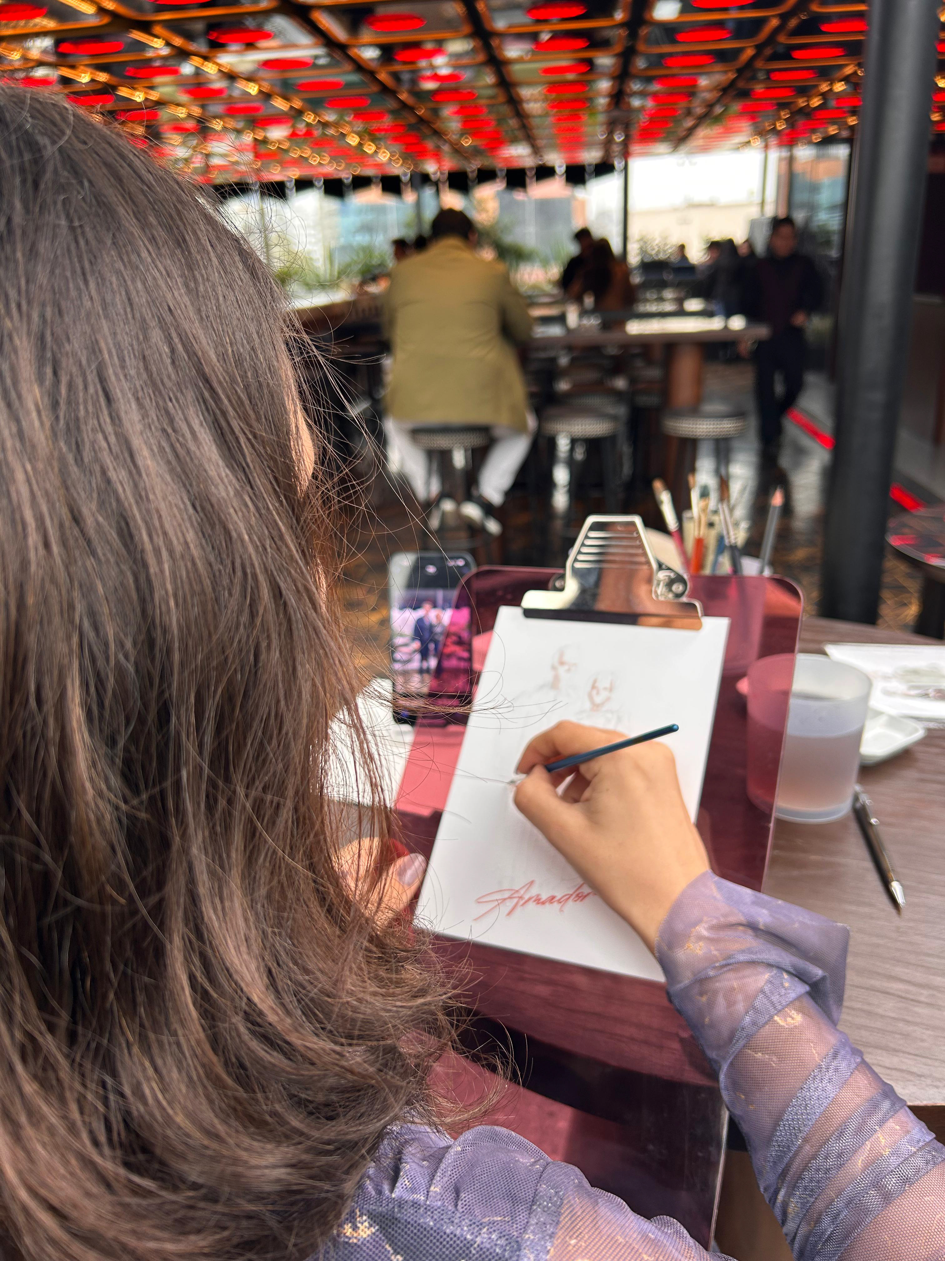 ¡Hola! Soy Gabriela Pinto, acuarelista y diseñadora gráfica. Comencé haciendo Live Painting sin saber que este camino me llenaría de alegría. Nada me hace más feliz que saber que mi arte ha sido parte de un recuerdo especial.